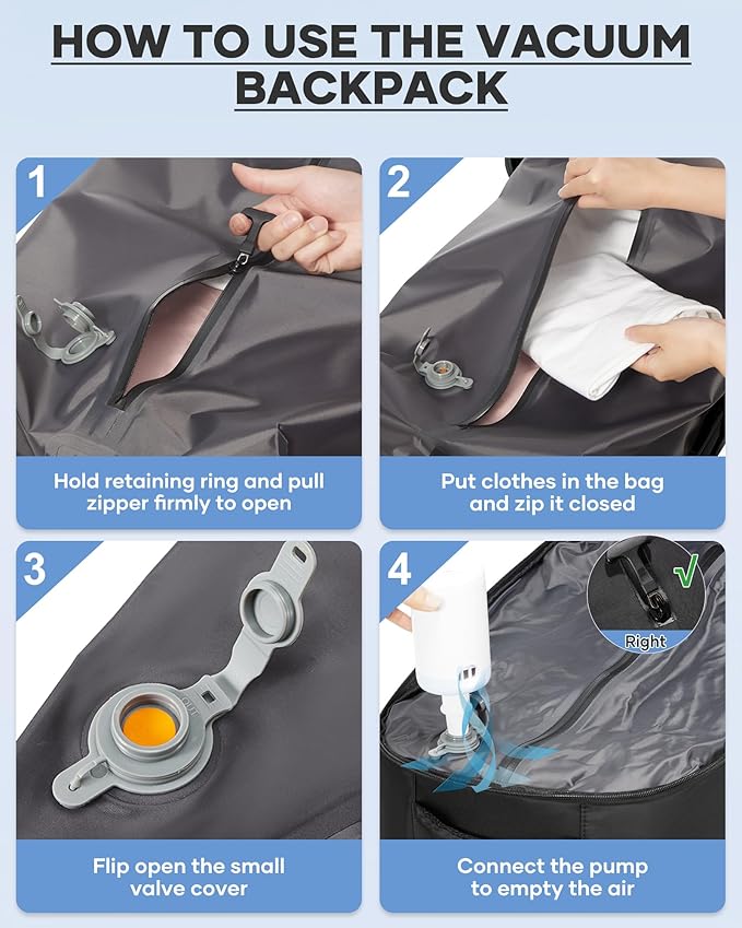 - Versatile Vacuum Sealing for Any Adventure: The airback backpack with pump technology transforms this bag. Perfect as an easypacker travel backpack vacuum for university, commuting, business, hiking, weekends, or short trips. This travel backpack with vacuum compression (vacuum seal backpack for traveling) is your reliable compression travel backpack for maximizing space and minimizing bulk effortlessly