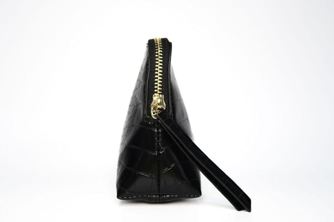 - Bold Crocodile Texture in Black Onyx – Make a powerful style statement with this sleek, jet-black crocodile-textured cosmetic bag, perfect for adding a polished edge to your everyday accessories.