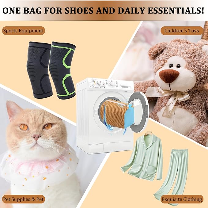 - 【Suitable for Most Shoe Sizes and Types】Whether you are washing running shoes, casual sports shoes, or children's shoes, this versatile laundry shoe bag is the perfect solution. Its large size can accommodate most types of shoes, making it an ideal shoe cleaning bag for washing machines and dryers. Durable and reusable, this washing machine shoe bag is a must-have for every household