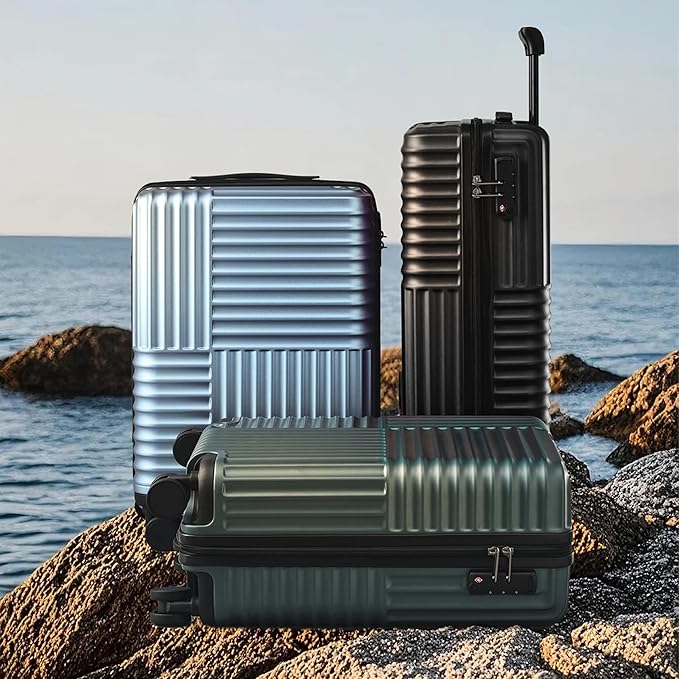 - 【Durable PC+ABS Hybrid Shell】Crafted with PC+ABS composite material, and features our signature 7-rib design that enhances impact resistance and prevents scratch visibility, this suitcase withstands rough handling while maintaining a sleek appearance.