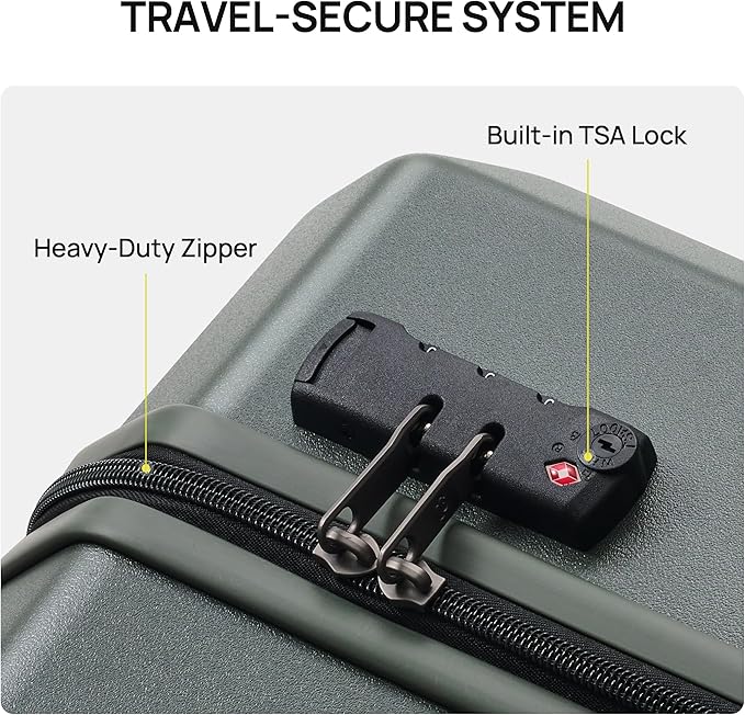 - 【TSA-Approved Security Lock】The TSA-approved lock (default password: 0-0-0) ensures your belongings stay secure while allowing airport security to inspect your luggage without damage. Set your own password for added peace of mind.