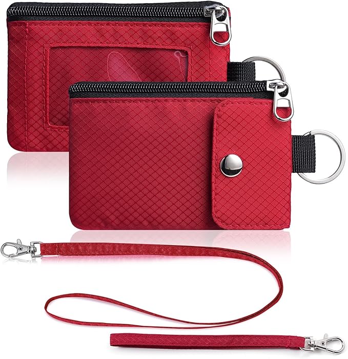 Minimalist Wallet For Mens Womens, Keychain RFID Blocking Zipper Small Wallet with ID Window 2 Lanyards,Water Resistant Travel Cash Card Coin Case Boys Girls