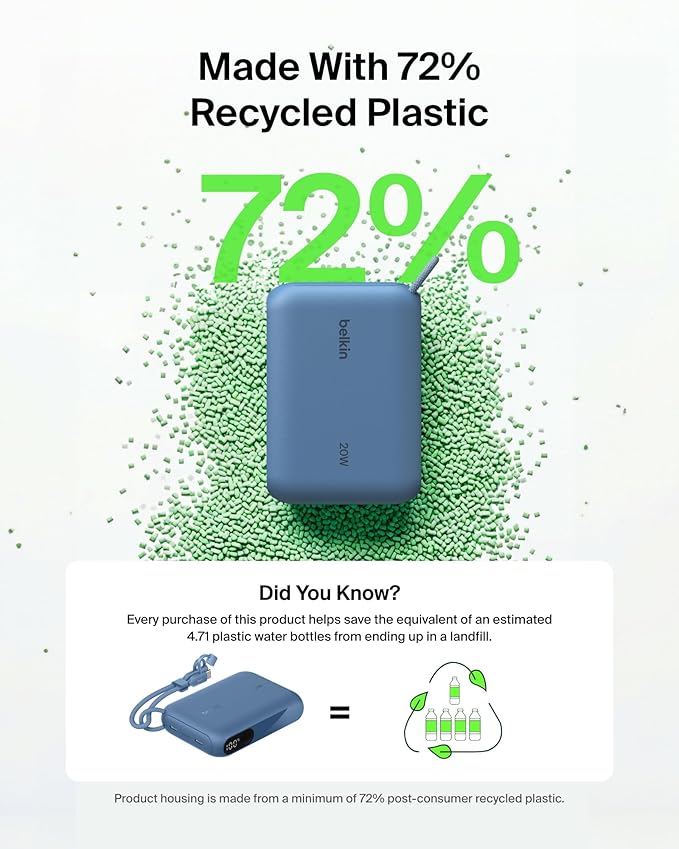 - FAST CHARGING FOR YOUR SMARTPHONE OR TABLET ON THE GO: This versatile power bank provides a 20W max output to recharge your iPhone, Galaxy, iPad, and more at home or on the go. Charge an iPhone 16 Pro from 0-50% in as little as 25 minutes.