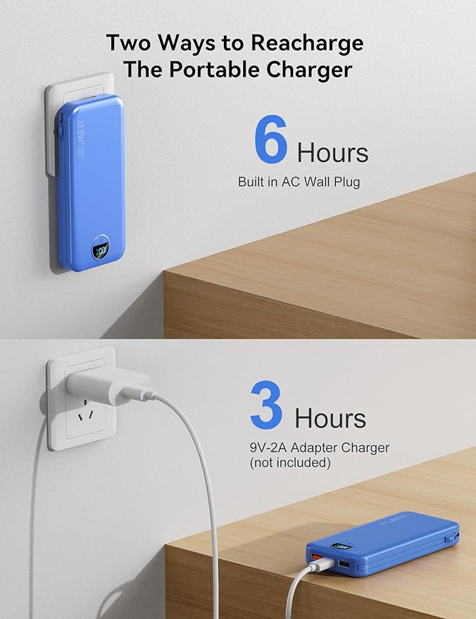- 【Two Ways to Recharge The Portable Charger】It will be fully charged within 6 hours through the AC wall plug. Using the USB C charging port, you only need 3 hours for fully charging.Equipped with an intelligent LED display, you can always know the remaining charge level of the portable power bank.