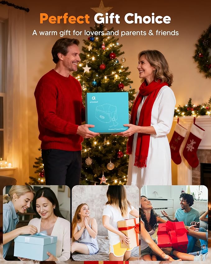 arboleaf Heated Neck Pillow for Travel, Memory Foam Airplane Pillow with Graphene Zoned Heating, USB-C Rechargeable, 360° Support — Comfort & Neck Pain Relief for Long Flights, Car & Office