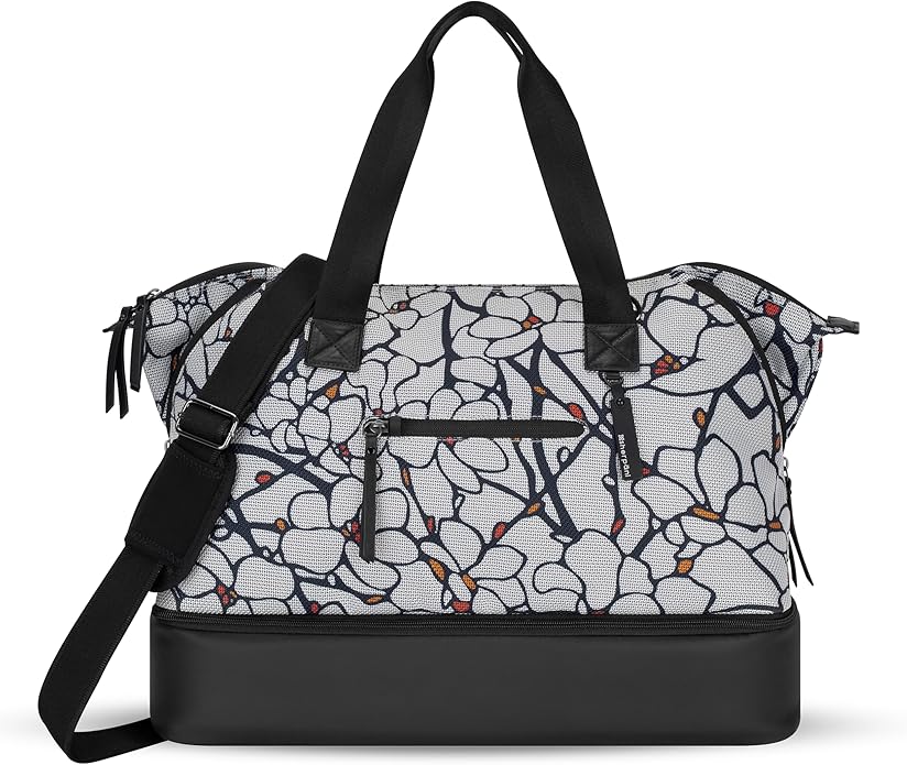 - FUNCTIONAL DESIGN - The Boston includes a luggage pass-through, external zipper pockets, and a removable bottom compartment ideal for storing shoes. The deep main compartment includes a zipper pocket, 2 slip pockets, and 3 mesh slip pockets for internal organization. The bag also features stylish gunmetal hardware.