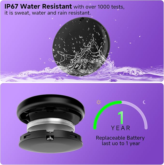 - 🔋【One-year battery life & Replaceable battery】 CR2032 button batteries, low power consumption design for 6-month battery life, no tools required for replacement, travel without worry.