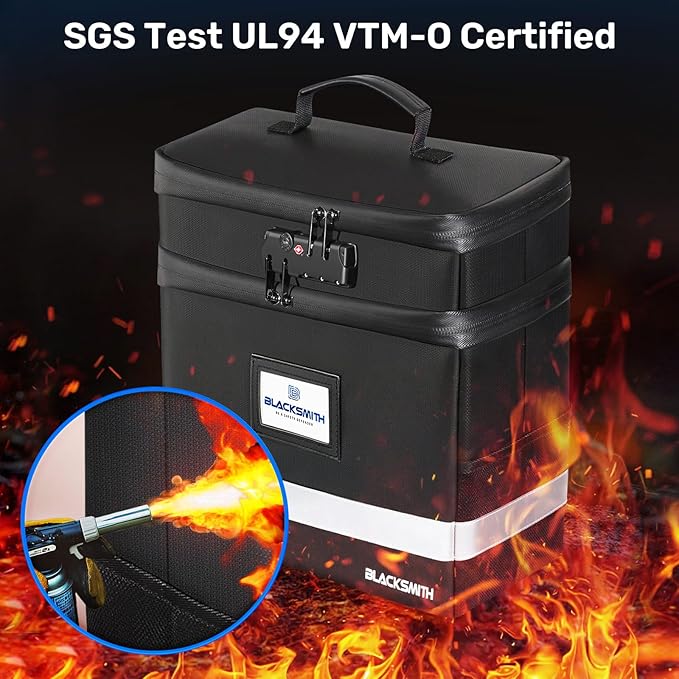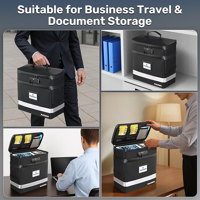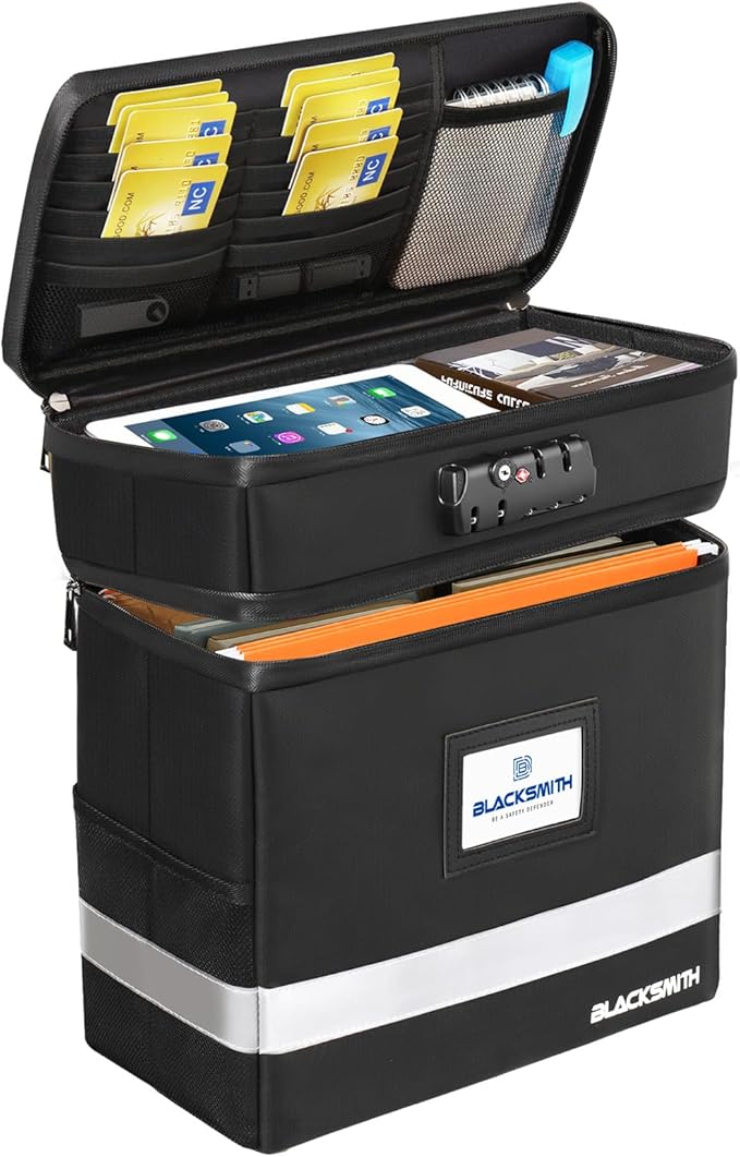 BlackSmith Fireproof Document Box With Lock, 4200°F Heat Resistant & IPX3 Waterproof 2 Layer Document Bag with Hanging File Organizer for Letter Size, Portable File Safe Box for Office, Travel