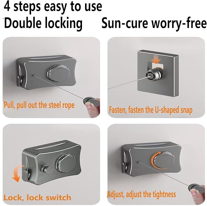 - 2.【Heavy Duty load-bearing capacity】The double-track pulley structure reduces friction, prolongs the service life of the steel wire, and is less likely to break after repeated stretching. It can hang to dry large items of clothing such as bed sheets, blankets and winter coats at the same time.Simply lock and rotate to tighten the line, even holding a heavy load of laundry as for ensuring stability with every use .