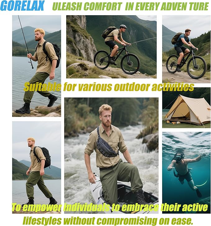 GORELAX Fanny Pack for Men, EDC Belt Bag with Anti-Theft Pocket, Adjustable Waist Pack Hiking Fishing(42"-59"Waist Strap)