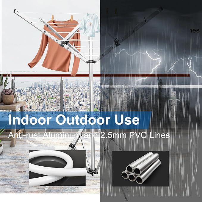 Foldable Clothes Drying Rack, 131 Feet Rotary Clothesline Outdoor for All Weather, Outdoor Clothes Drying Rack for Balcony Patio Use, Quick Dry and Sturdy Frame