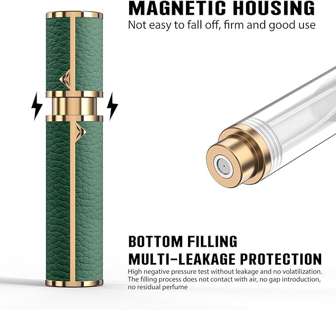 - Luxurious Design: Wrapped in genuine leather with a magnetic detachable cap, this mini perfume refillable bottle exudes elegance and makes an unforgettable gift for anniversaries, birthdays or special celebrations