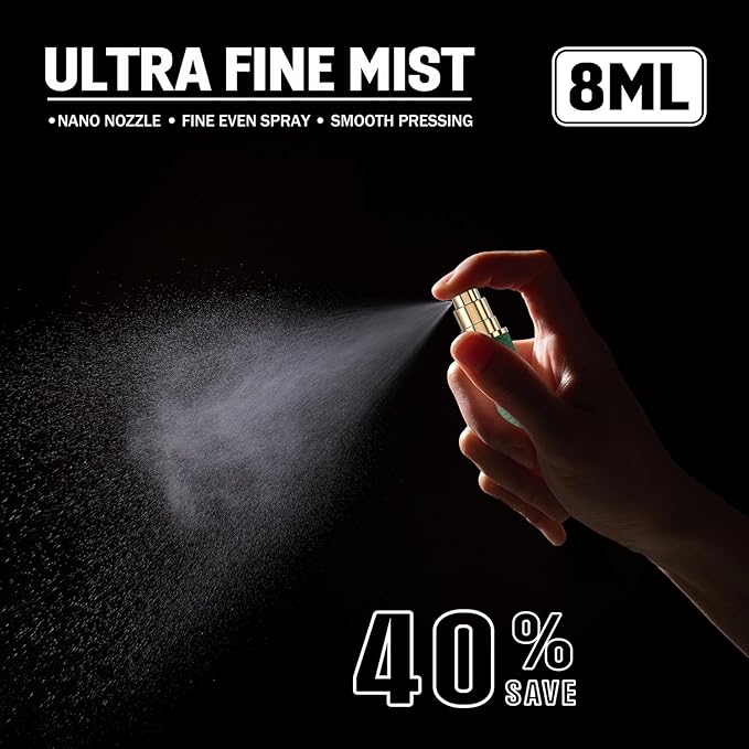 - Ultra Fine Mist: High performance travel size perfume refill bottle delivers an even, delicate nano mist that maximizes each drop of fragrance during office breaks or romantic date nights