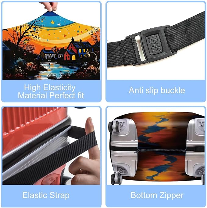 Starry Night Luggage Cover – Artistic Travel Suitcase Protector with Moon and Village Landscape Design, Elastic Washable Luggage Cover for 24"-26" Suitcase,M