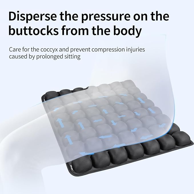 - Experience cloud-like comfort with this inflatable airplane seat cushion, designed for long flights and travel ease. The adjustable air pressure allows personalized support, ensuring relief during extended sitting.