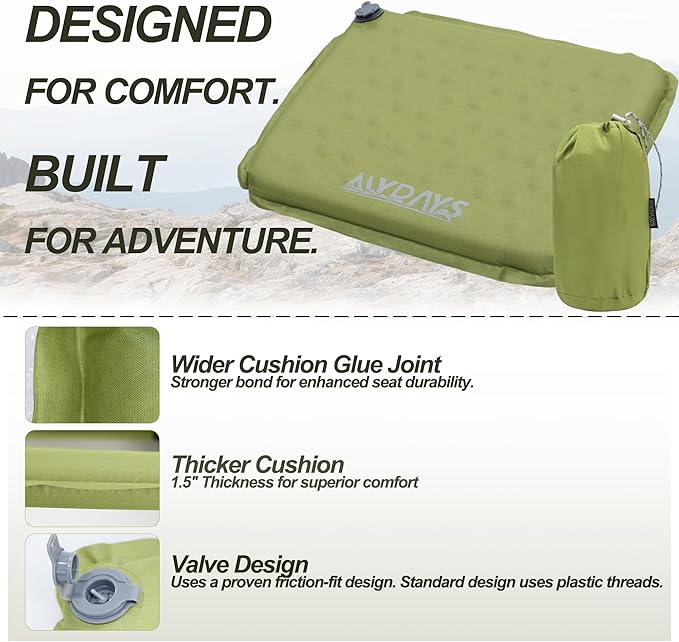 - COMFORTABLE: The inflatable cushion pad crafted with memory foam filling, our inflatable seat cushion delivers soft support that alleviates pressure on your hips and back. Perfect for use on hard surfaces, it can transform into an outdoor self-inflating airplane pillow, enhancing your travel experience.