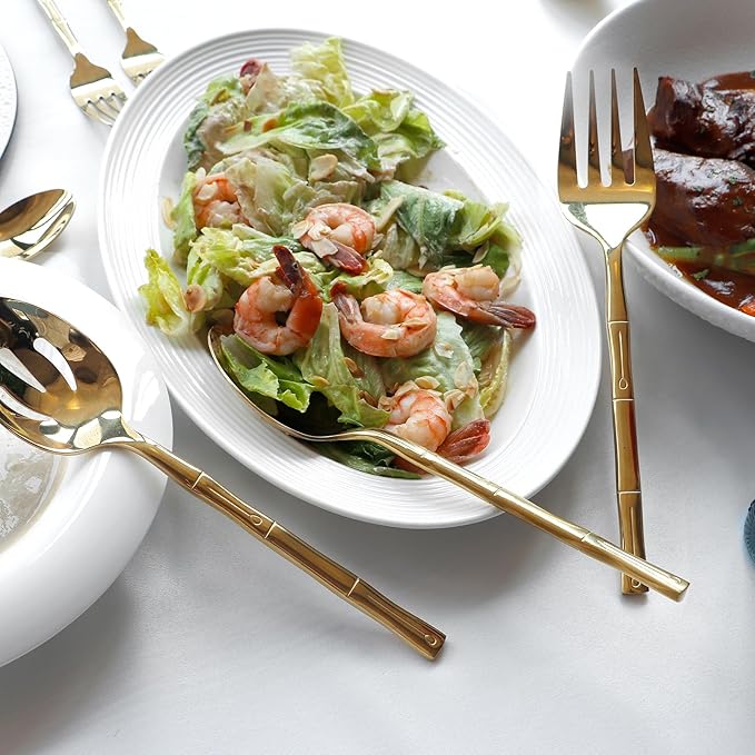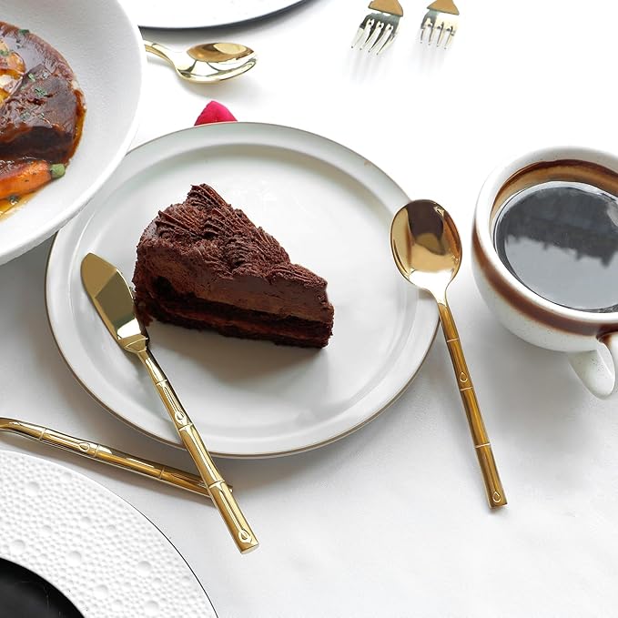 - 【Color and Design】▶Shiny gold flatware set with mirror polish finish, thickened and unique handle with bamboo pattern, comfortable to hold