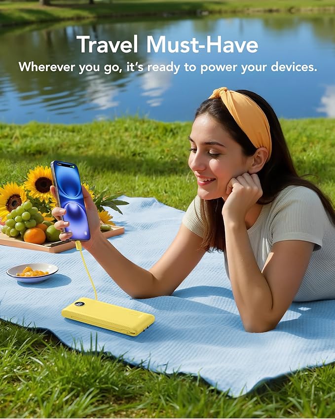 - [Supports Up to 22.5W Fast Charging] This portable charger with cables supports 22.5W fast charging through its USB port. Additionally, it boasts built-in cables supporting PD 20W and QC 18W, ensuring efficient and rapid charging capabilities.