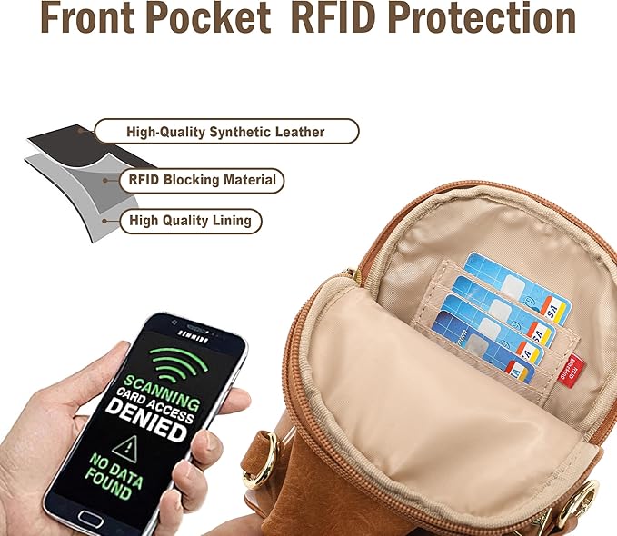 - RFID Blocking:The front zipper pocket of this rfid blocking bag has four card slots built inside, which are made of proprietary shielding materials. These card slots can effectively block RFID signals and protect your personal cards from unauthorized access