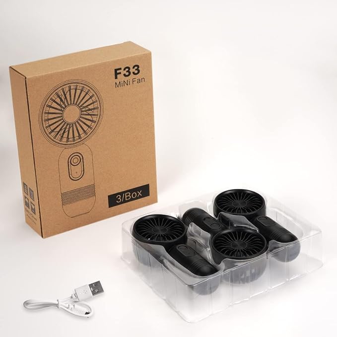 Mini Portable Fan 3 Pack, Cute Handheld Battery Operated Lightweight Small Personal Fans with 3 Speeds and USB Rechargeable Eyelash Fan for Stylish Girl Kids Women Men Office Outdoor Travel Camping