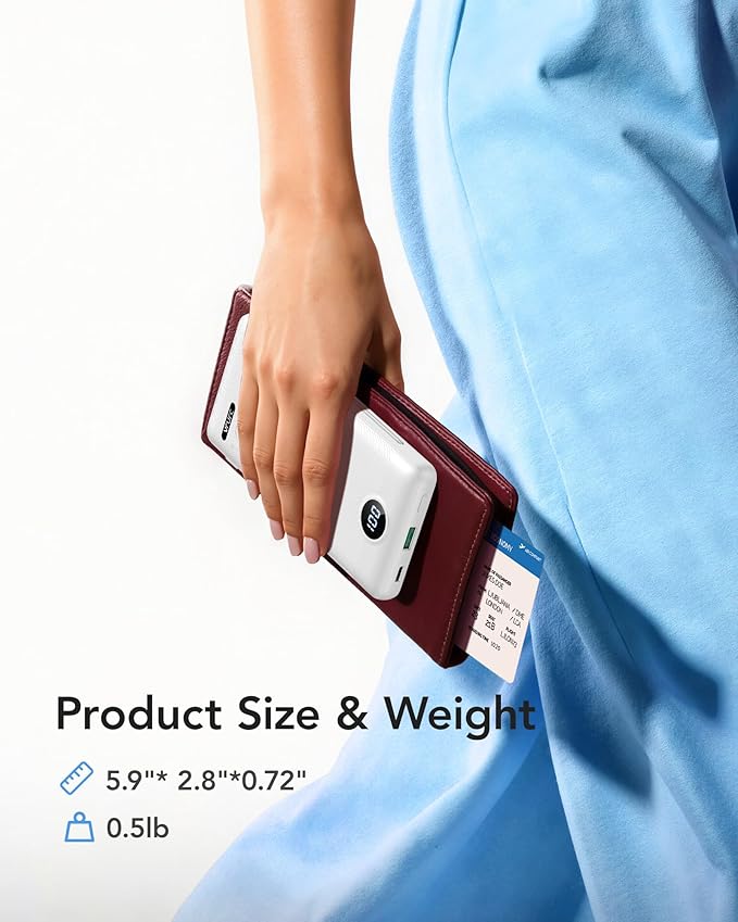 - [Slim & Compact Design] With dimensions of 5.9 x 2.8 x 0.7 inches and a weight of 8 ounces, this product's slim and compact design enhances on-the-go convenience without adding extra weight.