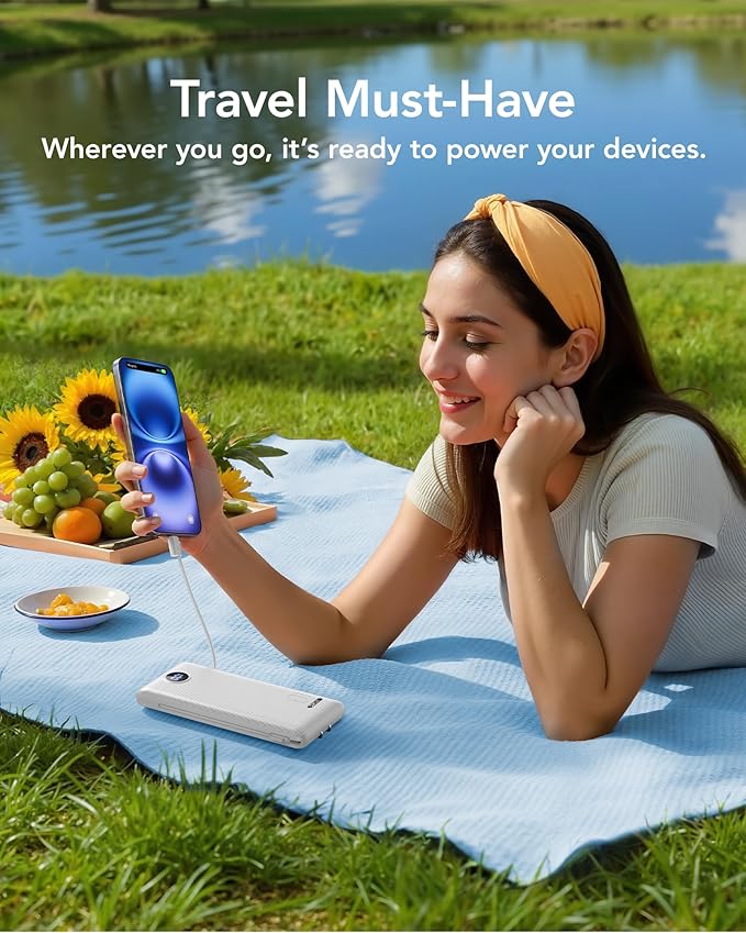 - [Smart Digital LED Display] The smart digital LED display provides a quick overview of remaining power. Additionally, the 3D texture on the surface enhances the tactile experience, offering a better 3D touch and grip to prevent slipping of the portable charger and connected devices.