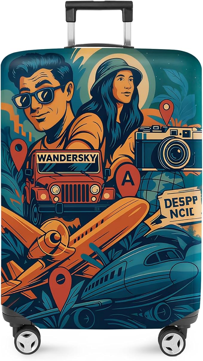 - Adventure Awaits Design: Features globetrotters, vehicles, and destinations. Adds personality and helps identify your suitcase quickly at baggage claim.