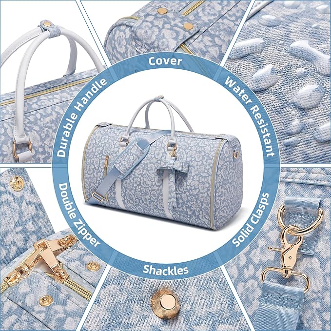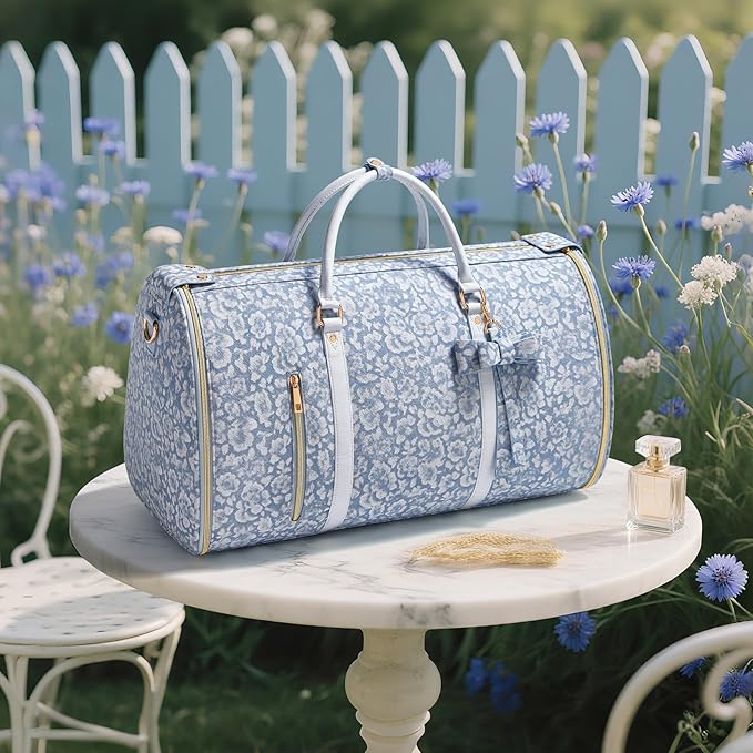 - Stylish & Versatile for Any Occasion: More than a travel bag – it's your life's stylish sidekick! The PU leather elevates every scene: from gym sessions to weekend brunches, or as a thoughtful gift (Halloween/Christmas). The elegant white-blue charms ladis, professionals, and brides alike, while the luggage sleeve attaches securely to suitcases. For jet-setters who demand both function and flair, this is your match
