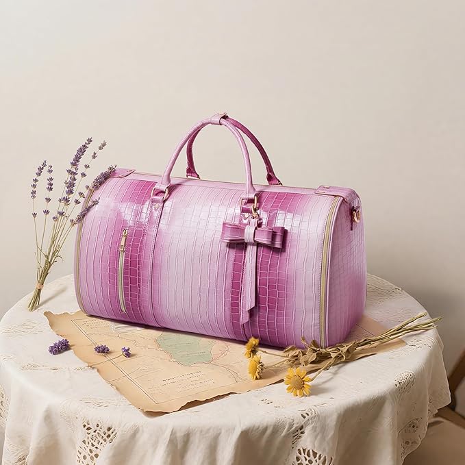 - Stylish & Versatile for Any Occasion: More than a travel bag – it's your life's stylish sidekick! The PU leather elevates every scene: from gym sessions to weekend brunches, or as a thoughtful gift (Halloween/Christmas). The elegant pink charms ladis, professionals, and brides alike, while the luggage sleeve attaches securely to suitcases. For jet-setters who demand both function and flair, this is your match