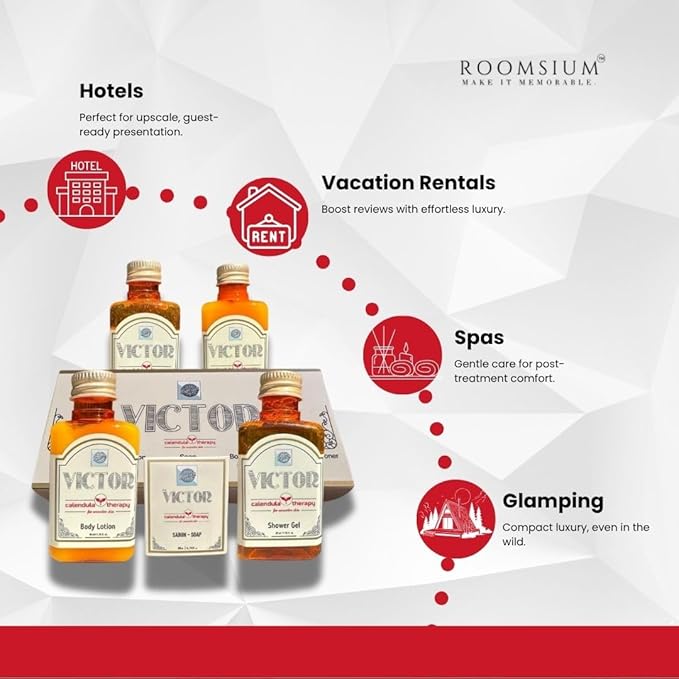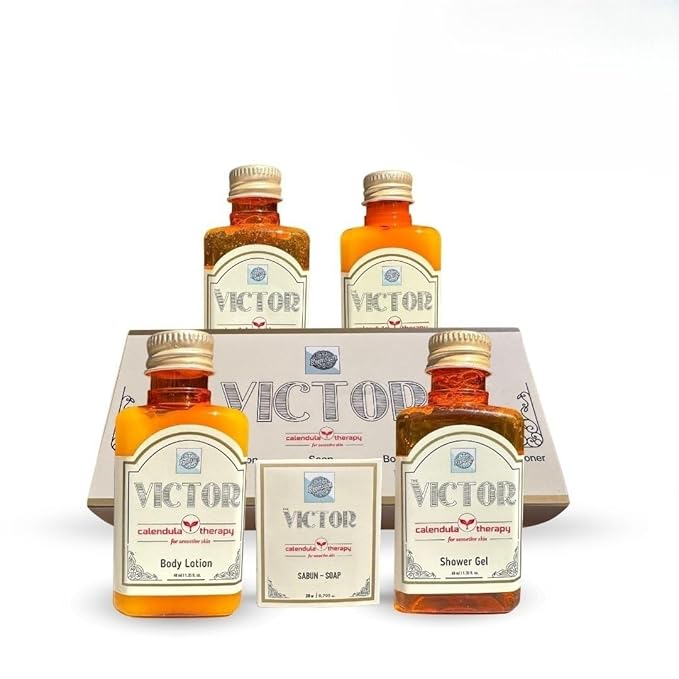 Victor 75-Piece Guest Toiletries Set – 15 Guest Kits with Shampoo, Conditioner, Shower Gel, Body Lotion & Soap – Goji Berry & Calendula, Paraben-Free, Made in Turkey