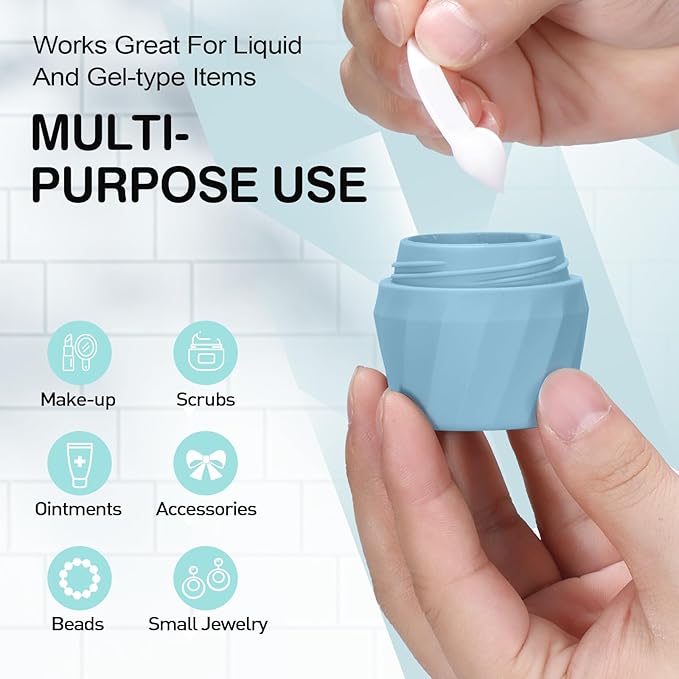 - 【MULTI-PURPOSE USE】14pack Travel Bottles for Toiletries have multiple uses. Travel Size Toiletries Containers Set can store creams, coconut oil, lotions, make-up, scrubs, ointments, accessories, beads, small jewelry, and more. Works great for liquid and gel-type items