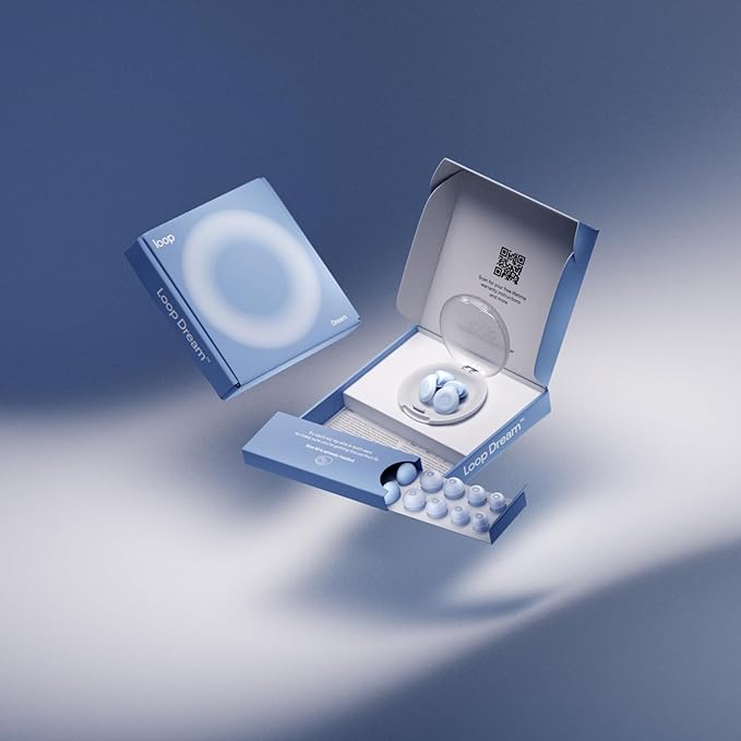 - IN THE BOX – 1 set of Loop Dream earplugs, 4 sets of Loop Dream Foam-Silicone Ear Tips (sizes XS + S + M + L — M comes pre-installed), 4 sets of Loop Dream Double Tips (sizes XS + S + M + L), and 1 Loop Dream Carry Case, featuring a no-slip grip bottom and a sizeable compartment for easy access at your bedside.