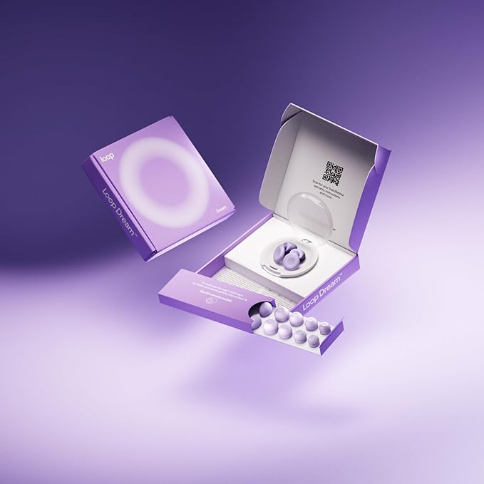 - IN THE BOX – 1 set of Loop Dream earplugs, 4 sets of Loop Dream Foam-Silicone Ear Tips (sizes XS + S + M + L — M comes pre-installed), 4 sets of Loop Dream Double Tips (sizes XS + S + M + L), and 1 Loop Dream Carry Case, featuring a no-slip grip bottom and a sizeable compartment for easy access at your bedside.