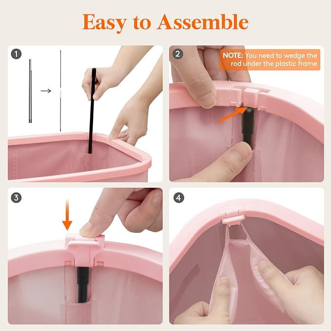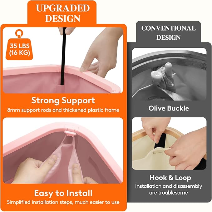 - Robust & Stable: Constructed from premium tear-resistant fabric, this dirty clothes hamper includes a plastic frame and four support rods for enhanced stability, supporting up to 16 kg/35 lbs without collapsing or deforming over time