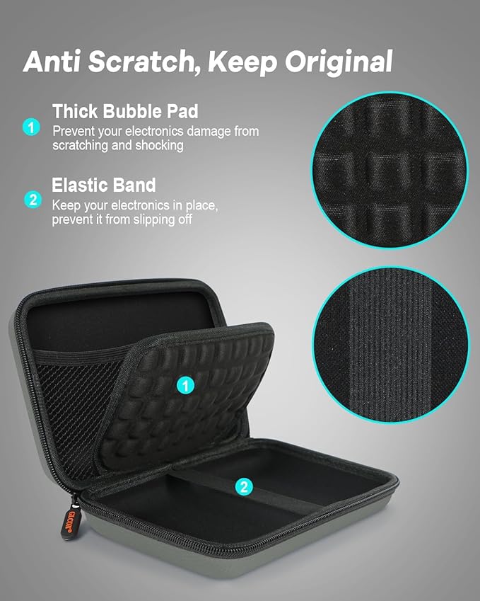 - Hard Shell Protective Case - This hard travel case is made of hard shell eva material for shock resistance and high protection of your gadgets, bubble pad for scratch prevention, a elastic strap and double zippers to keep item in place without slipping off