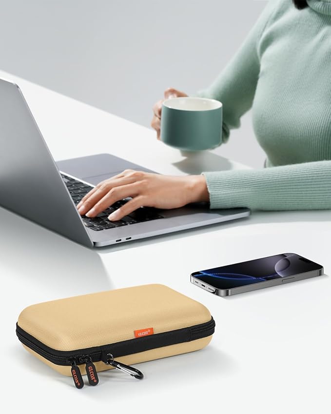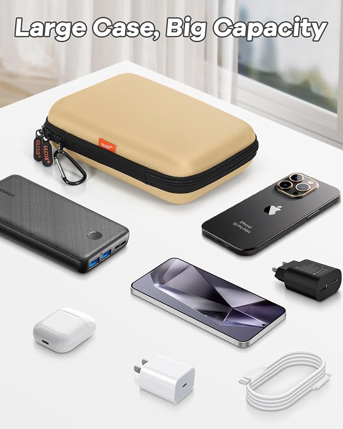 Kakhi-Brown Hard Shell Carrying Case for External Hard Drive, Power Bank, Charger, Cable, Cell Phone, Electronic Accessories - Larger Capacity Storage Pouch Shockproof Travel Case Bag for Men Women