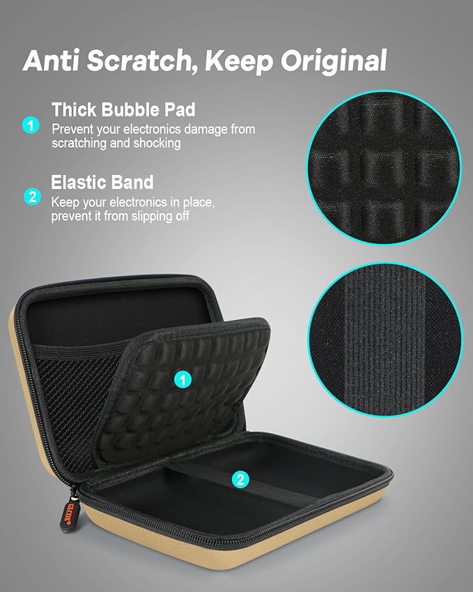 - Hard Shell Protective Case - This hard travel case is made of hard shell eva material for shock resistance and high protection of your gadgets, bubble pad for scratch prevention, a elastic strap and double zippers to keep item in place without slipping off