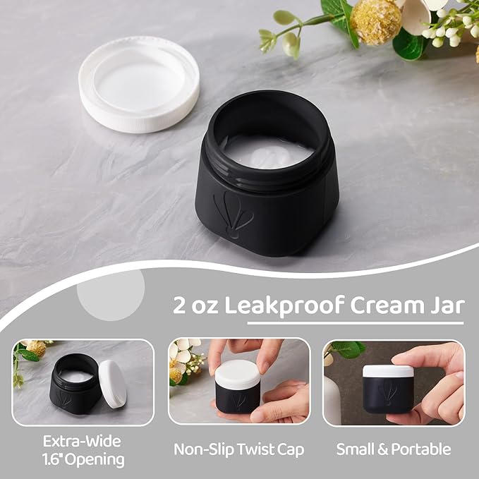 - 2oz Wide-Mouth Silicone Cream Jars: Extra-wide 1.6-inch opening (4cm) allows easy scooping with fingers or spatulas, paired with anti-slip screw lids for leakproof storage of thick creams, balms, or serums. INSFIT small travel containers for creams are your ideal travel accessories.