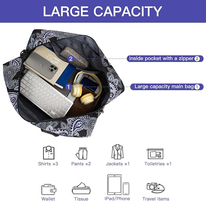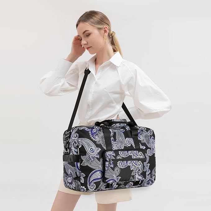 F.FETIVIN Weekender Bag Carry On Travel Duffle Bag Medium Overnight Bag for Women(Black Paisley)