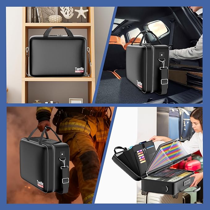 - [Premium Combination Lock & Reinforced Metal Zipper] Tamfile fireproof document box is equipped combination lock and reinforced metal zipper, providing complete security for your Important documents and valuable and more. Ideal for home, office, and travel applications, this security file box effectively deters theft while offering complete peace of mind.