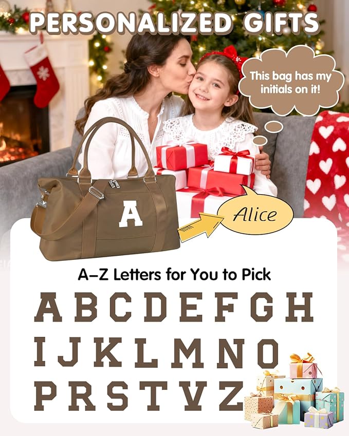 Birthday Graduation Gifts for Daughter,Initial Travel Duffel Bag Sports Gym Bag for Girls Teen Kids Birthday Gifts,Personalized Weekender Bag Carry On Tote Bags Cute Overnight Bag for Women(Brown, I)