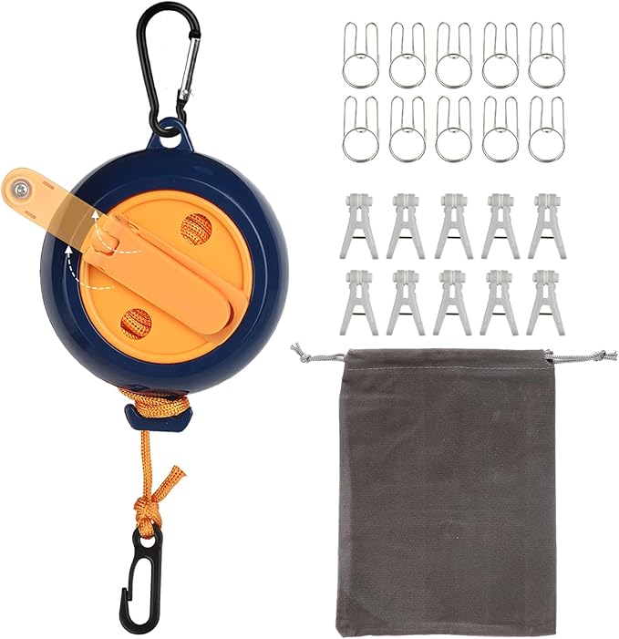 - Retractable Length : The travel clothesline comes with 32.8ft/10m rope that is rotationally stored in a small box and can be rolled out into any length to suit your needs. The laundry line is designed with a rocking handle contraction, which can quickly take the rope into the main body, it is a great retractable clothesline outdoor.