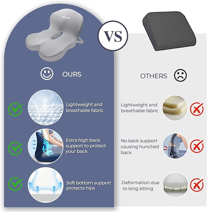 - 👍【Smart Memory Foam Core】Made with high-density slow-rebound memory foam, it molds to your body shape with heat, delivering customized support for your lower back and hips. Ideal not only for car seats but also for office chairs, wheelchairs, gaming chairs, and more.