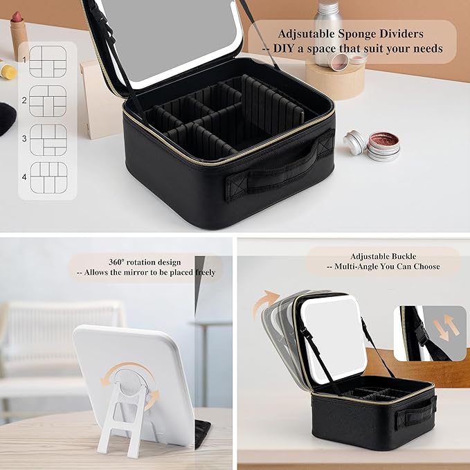 - 【Ample Storage with Adjustable Dividers】Fully customizable Dividers let you neatly organize lipsticks, brushes, palettes, skincare, nail tools and more, maximizing every inch of interior space.