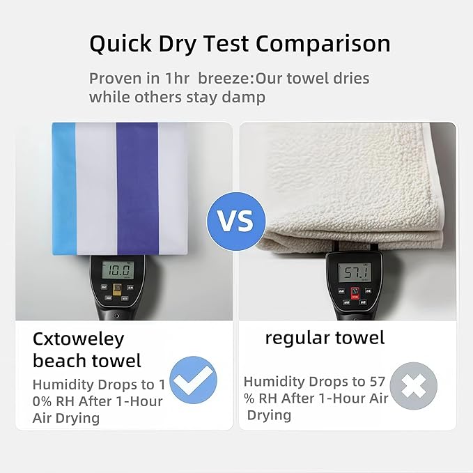 - Super Absorbent, Quick Dry and Compact : It is not the same as cotton,but it's smoother,thinner and stronger than cotton or terry cloth quality. Quick drying : 3 times faster than cotton. The towels can absorb up to 5 times its weight.That's why it works perfectly as beach and travel towel and why it dries off so fast