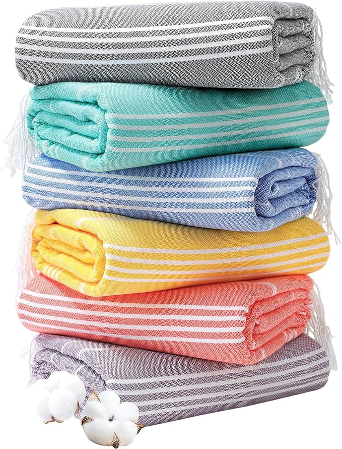 Genovega 6 Oversized Turkish Beach Bath Towel Set Bulk 74"x38" Sand Free Extra Large Quick Dry Swimming Camping Pool Clearance Towels Blanket Essentials Adult Multi Stripes Puper