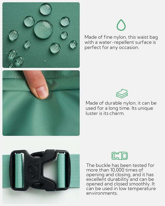- Premium Material & Sturdy SBS Zipper: Hiking waist bag is made of high-quality nylon material, durable and breathable, fine workmanship and tight stitching. Smooth zippers ensure users to quick access to the items, preventing items from falling