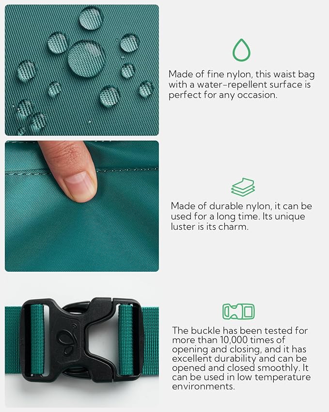 - Premium Material & Sturdy SBS Zipper: Hiking waist bag is made of high-quality nylon material, durable and breathable, fine workmanship and tight stitching. Smooth zippers ensure users to quick access to the items, preventing items from falling