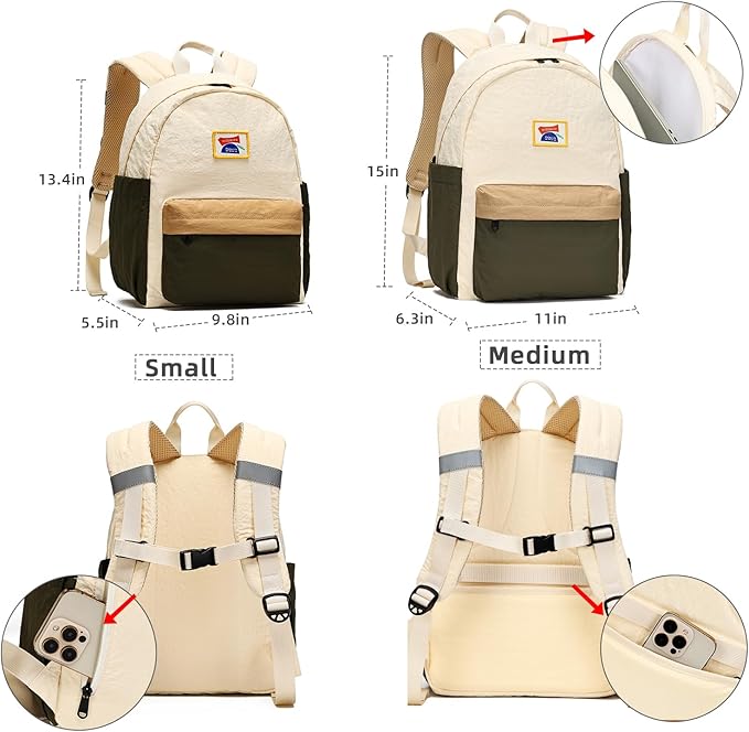 - Medium size:only 1.08lb.Compared to the small size.Medium size has an additional computer compartment that can hold a 15-inch laptop.Larger anti-theft zipper pocket on the back.It can also be hung on a suitcase, making it convenient for travel.