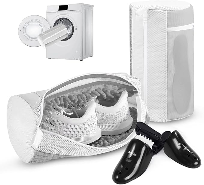 - Solution for Most of Your Footwear: The Fluffy Fibers Shoe Washing Machine Bag is the viral laundry hack you never knew you needed — a smart, mess-free solution for cleaning your dirty sneakers, trainers, gym shoes , kids’ school shoes, or those white kicks you swore you’d keep clean. Not just a ‘protection pod’ for sneakers, but also a ‘caretaker’ for delicate footwear.